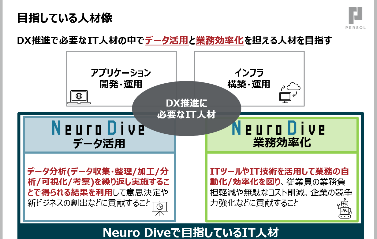 このたび Neuro Dive では、企業のDX化を推進する上で欠かせない「データ活用」と「業務効率化」に対応できるIT人材の育成を目的に、2025年10月1日より新しい学習カリキュラムの提供を開始いたします。